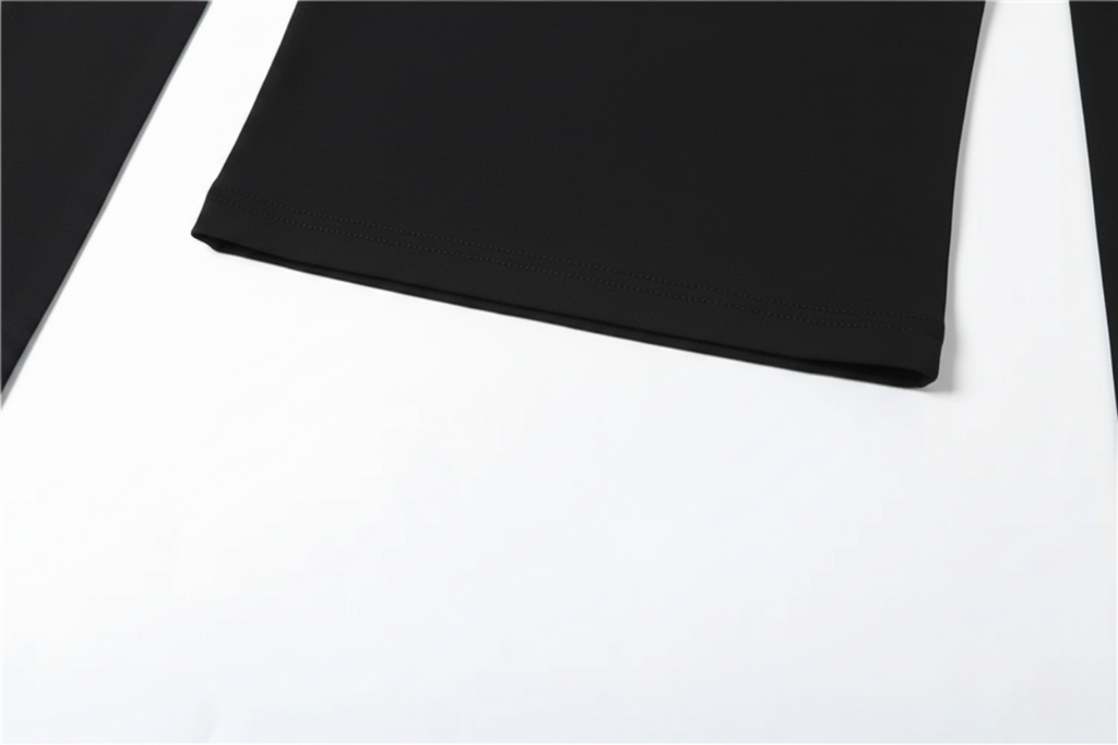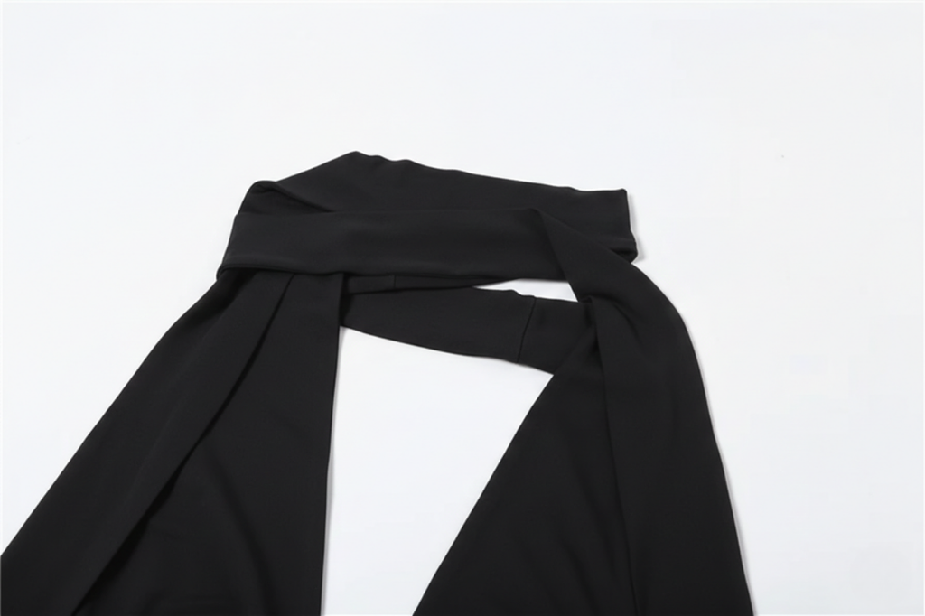 O tecido acompanha o corpo sem impor rigidez, criando uma presença limpa, quase arquitetônica. Cada linha parece posicionada com intenção.