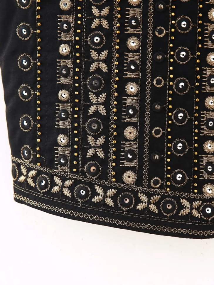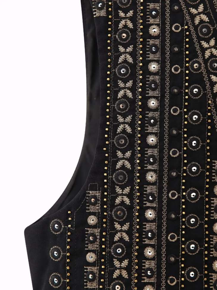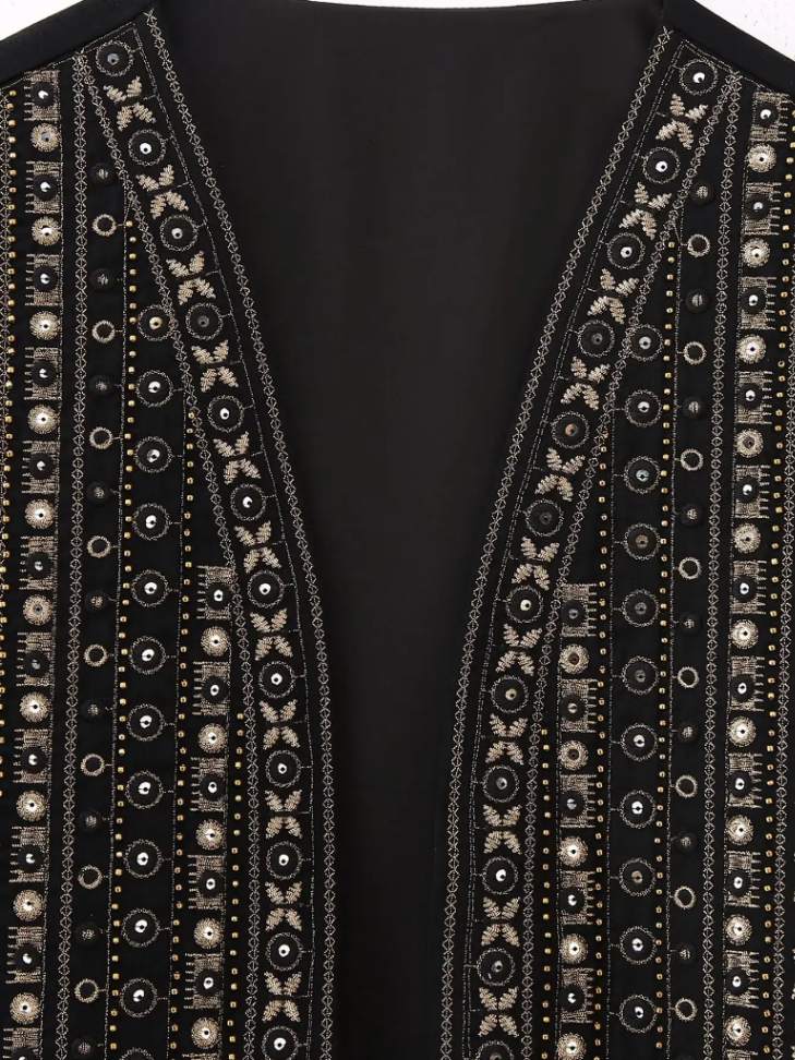 Há camadas que criam sombra interna, pequenas variações de volume que alteram a percepção do contorno. O corpo não é apenas vestido, é enquadrado.