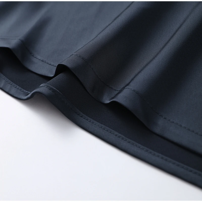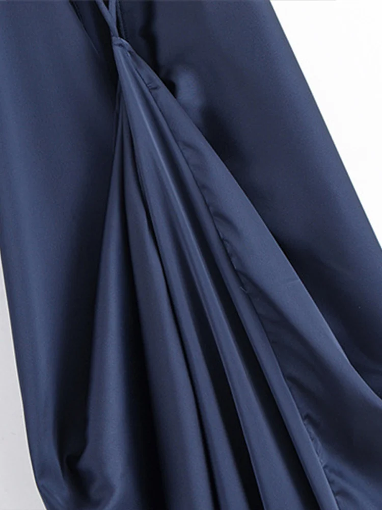 A frente permanece limpa e silenciosa, enquanto o drapeado posterior introduz tensão e profundidade à peça, revelando complexidade apenas ao olhar atento.