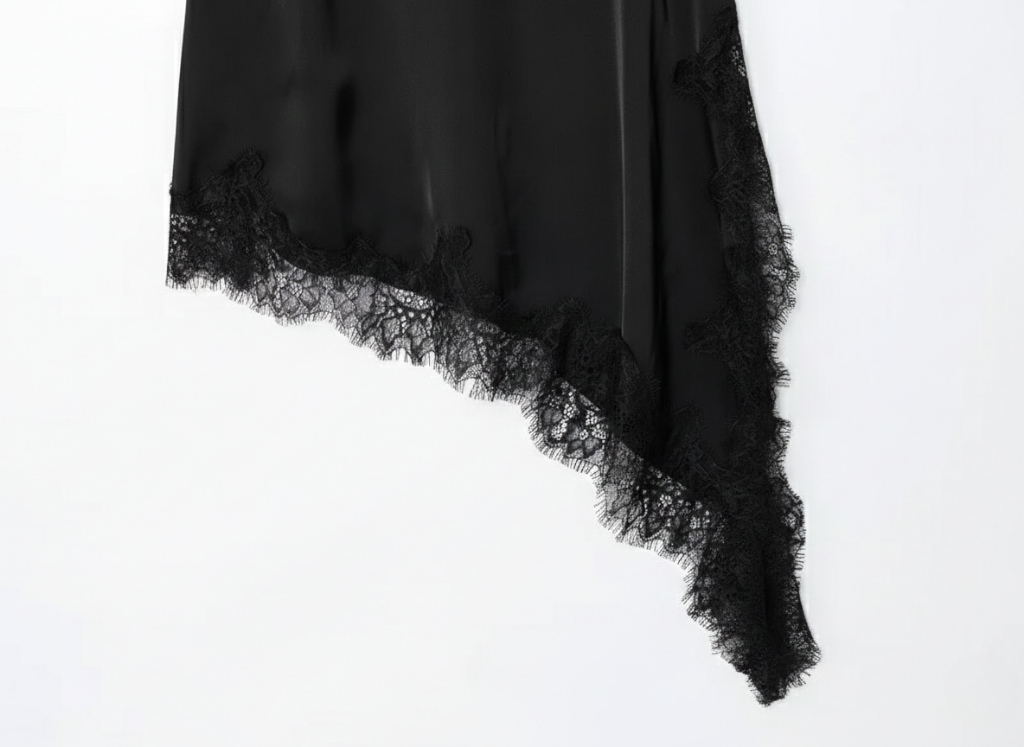 O vestido não se fixa em um eixo único, ele se ajusta, escapa e se recompõe ao caminhar.