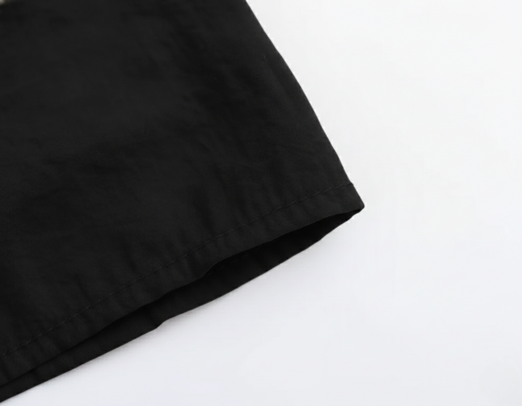 O tecido não repousa de forma passiva sobre o corpo. Ele escorre, tensiona e reposiciona o contorno conforme o gesto acontece. A superfície cria sombras sutis, revelando profundidade mesmo em linhas aparentemente simples.